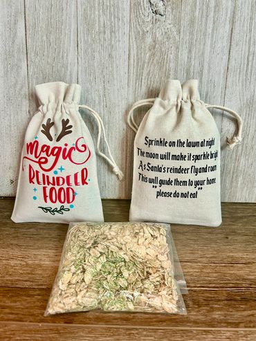 Magic Reindeer food bags keep the magic of Christmas alive. Bags are 4x6 inches and includes oats and your choice of glitter color inside.